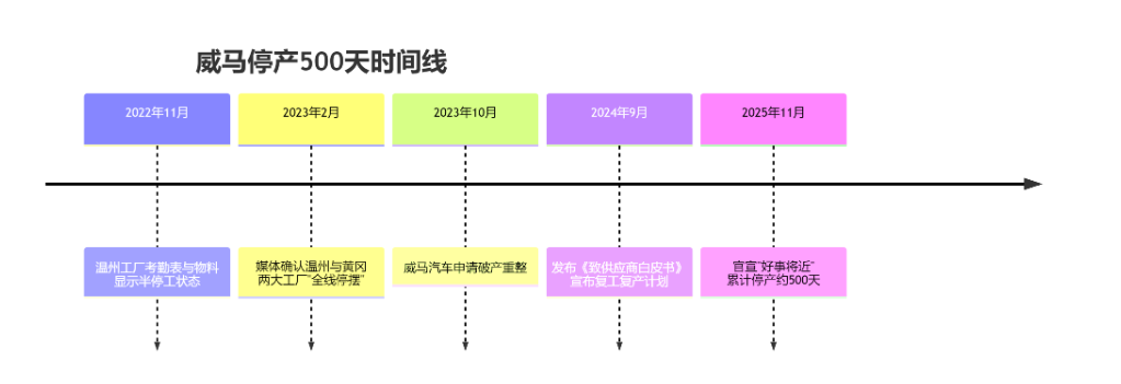 2022年12月,有消息稱,由于拖欠供應(yīng)商貨款,威馬工廠已陷入停產(chǎn)狀態(tài)。一位當(dāng)?shù)厝耸客嘎叮骸艾F(xiàn)在溫州工廠里都沒(méi)人了。”
