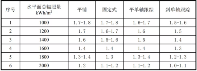 單面組件容配比典型地區(qū)算例結果