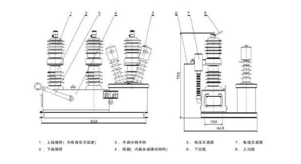 5)高壓斷路器的開斷容量可以在制造過程中做的很高。主要是依靠加電流互感器配合二次設備來保護。可具有短路保護、過載保護、漏電保護等功能。
