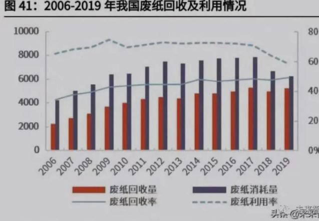 (1)垃圾分類、供給側(cè)改革政策疊加,有助于提升我國(guó)的廢紙回收率。隨 著限廢令的逐步趨嚴(yán),國(guó)內(nèi)廢紙?jiān)瞎┎粦?yīng)求,但我國(guó)廢紙回收率不足 50%, 仍存在較大的提高空間。垃圾分類、供給側(cè)改革政策疊加,有助于提升國(guó)內(nèi) 的廢紙回收率,緩解國(guó)內(nèi)廢紙短缺的情況,為廢紙類企業(yè)提供穩(wěn)定的原材料, 降低企業(yè)對(duì)于美廢等進(jìn)口廢紙的依賴,亦能提高國(guó)內(nèi)對(duì)廢紙的定價(jià)權(quán)。