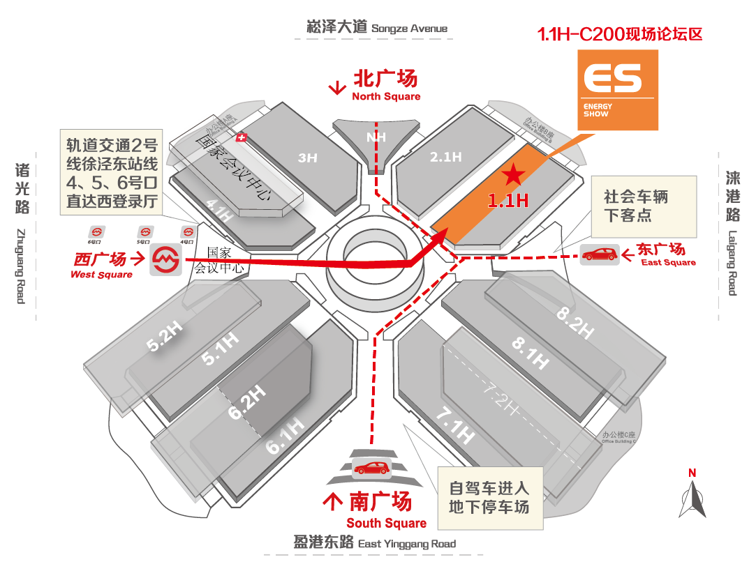從崧澤大道333號進入國家會展中心北廣場指定停車場,或從盈港東路168號進入國家會展中心南廣場地下停車場