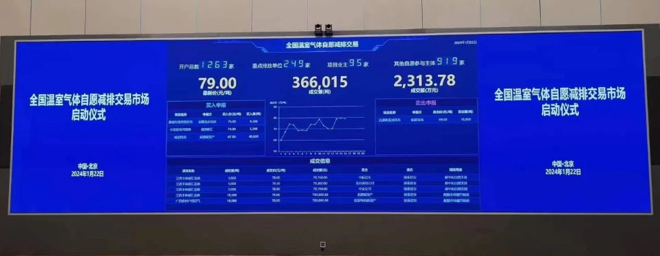 2024年1月22日,全國溫室氣體自愿減排交易市場啟動儀式在北京舉行。中共中央政治局常委、國務院副總理丁薛祥出席活動,宣布全國溫室氣體自愿減排交易市場啟動。本次啟動儀式有很多看點: