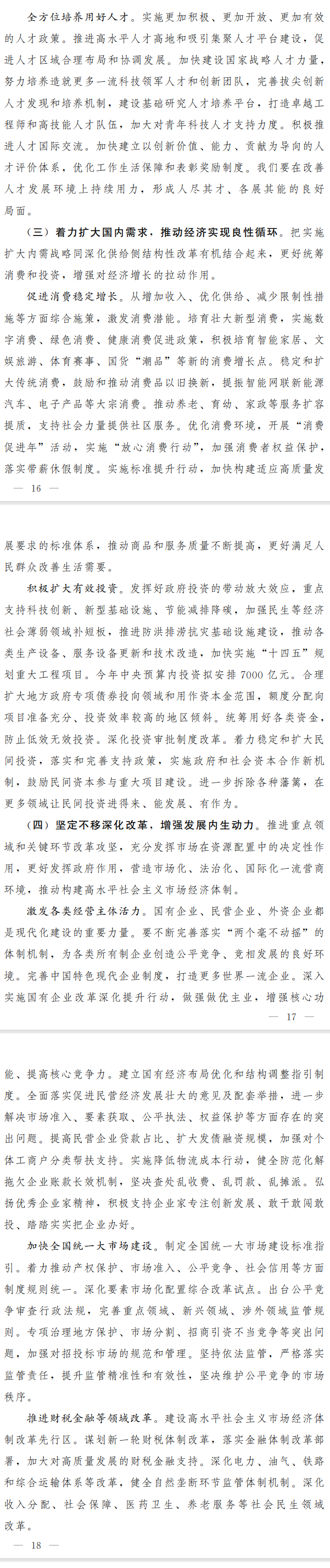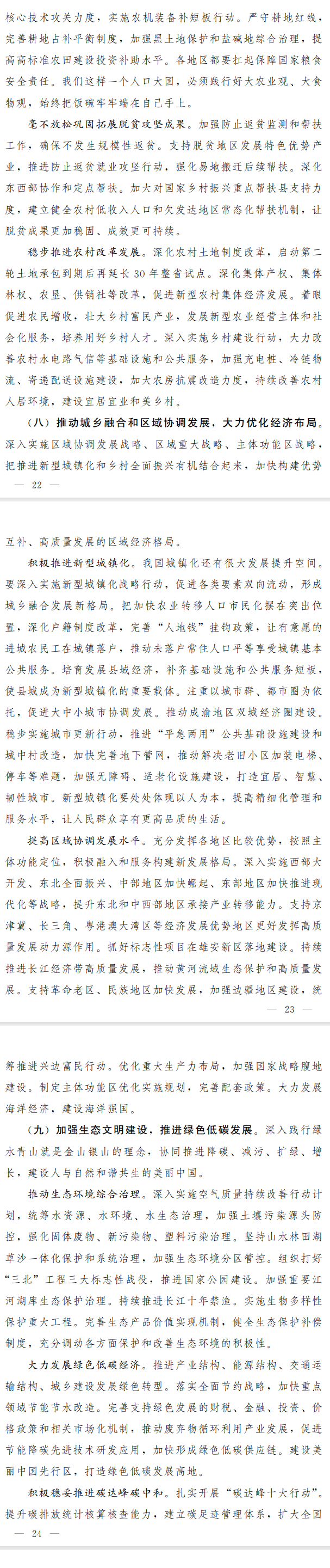 ——大力發展綠色低碳經濟。推進產業結構、能源結構、交通運輸結構、城鄉建設發展綠色轉型。加快重點領域節能節水改造。完善支持綠色發展的財稅、金融、投資、價格政策和相關市場化機制,推動廢棄物循環利用產業發展,促進節能降碳先進技術研發應用,加快形成綠色低碳供應鏈。