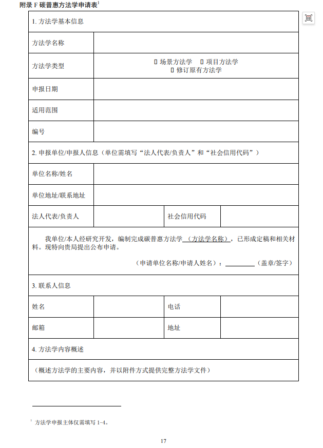 從事相關領域方法學研究,具備方法學編制技術條件,有溫室氣體自愿減排或碳普惠相關工作實踐經驗的機關、企事業單位、社會團體、其他社會組織、個人等。