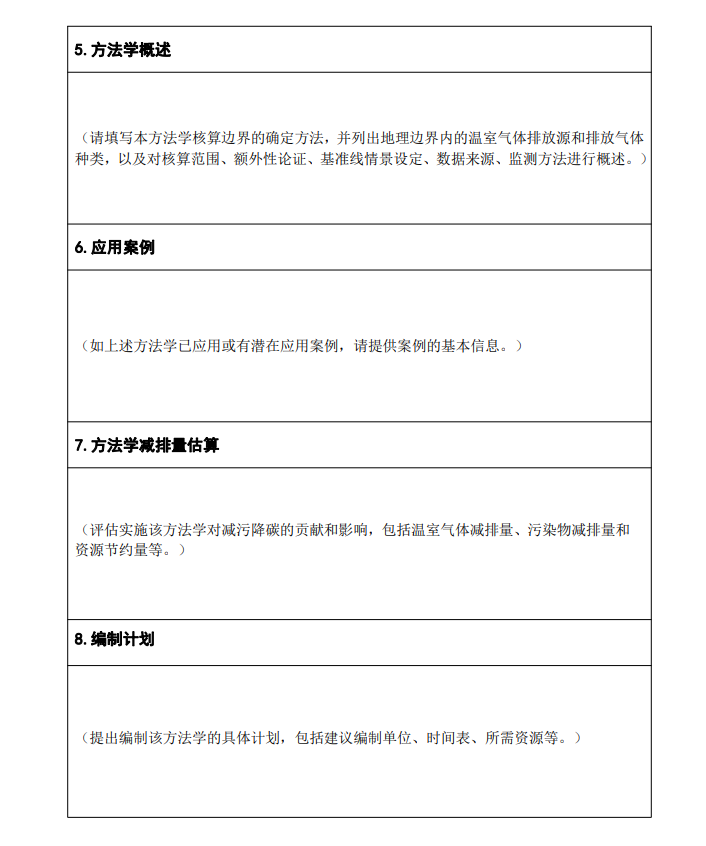 4.不能對現有法律法規規定的有強制溫室氣體減排義務的行業或領域提出方法學建議。
