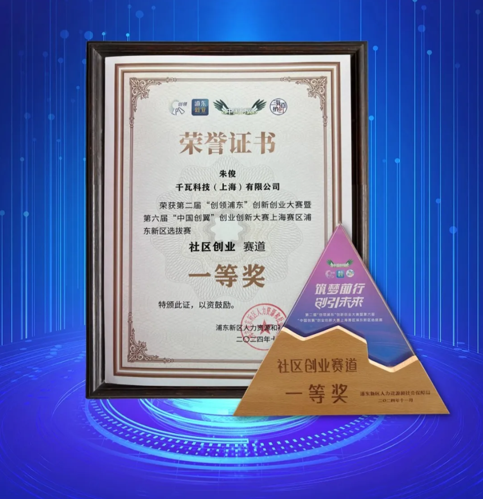 11月20日,第二屆“創領浦東”創新創業大賽暨第六屆“中國創翼”創業創新大賽上海賽區浦東新區選拔賽頒獎典禮在洋涇社區文化中心舉辦,千瓦科技榮獲“社區創業”賽道一等獎,現場與來自各行各業的創新者們共同慶祝這一榮耀時刻。